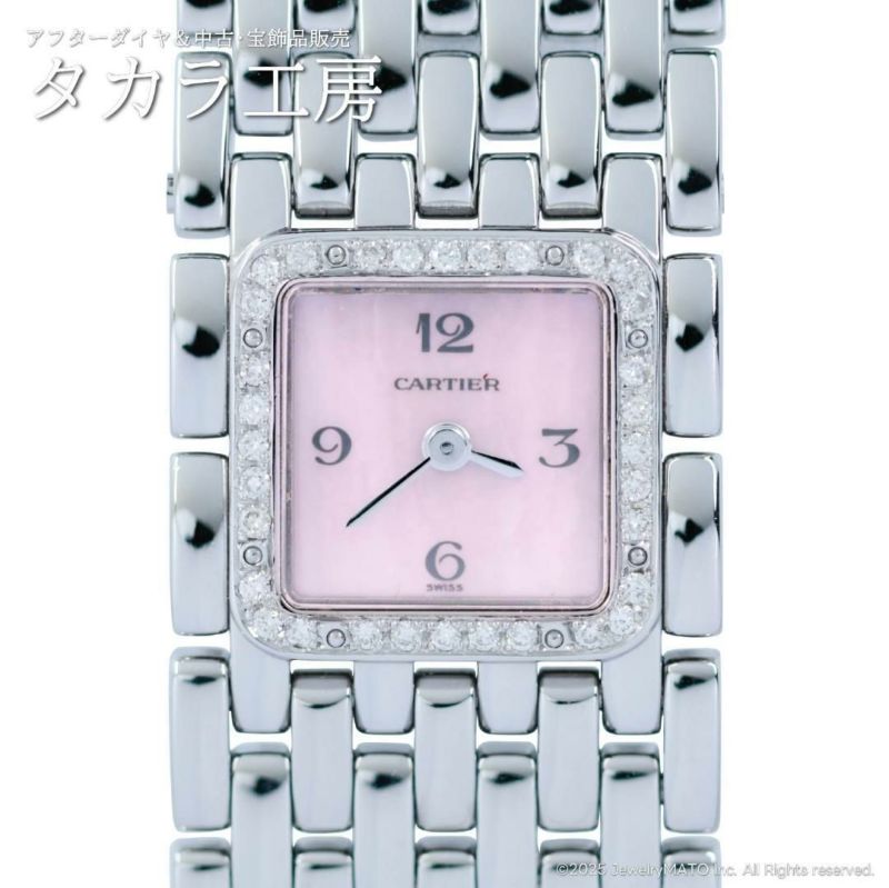 淡い色合いが愛らしいピンクシェル文字盤と、ダイヤモンドのコントラストが美しい一品です。