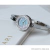 ベゼル一周には大きめのダイヤモンドが贅沢な輝きを放ち、ダイヤルに留められたダイヤモンドがさらに華やかさをプラス。