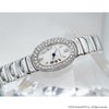 気品あふれるホワイトゴールドの輝きと、柔らかなオーバルフォルムが魅力のミニベニュワール。まるでジュエリーのように繊細で、手元に寄り添うそのデザインは、装う人の洗練された美しさを引き立てます。裏ぶたのボタンで調整するシンプルな操作性も魅力のひとつ。時を優雅に刻みながら、特別な存在感を放つ一本です。