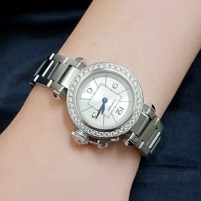 【鑑別書付き】 カルティエ 腕時計 ミスパシャ 白文字盤 ダイヤモンド