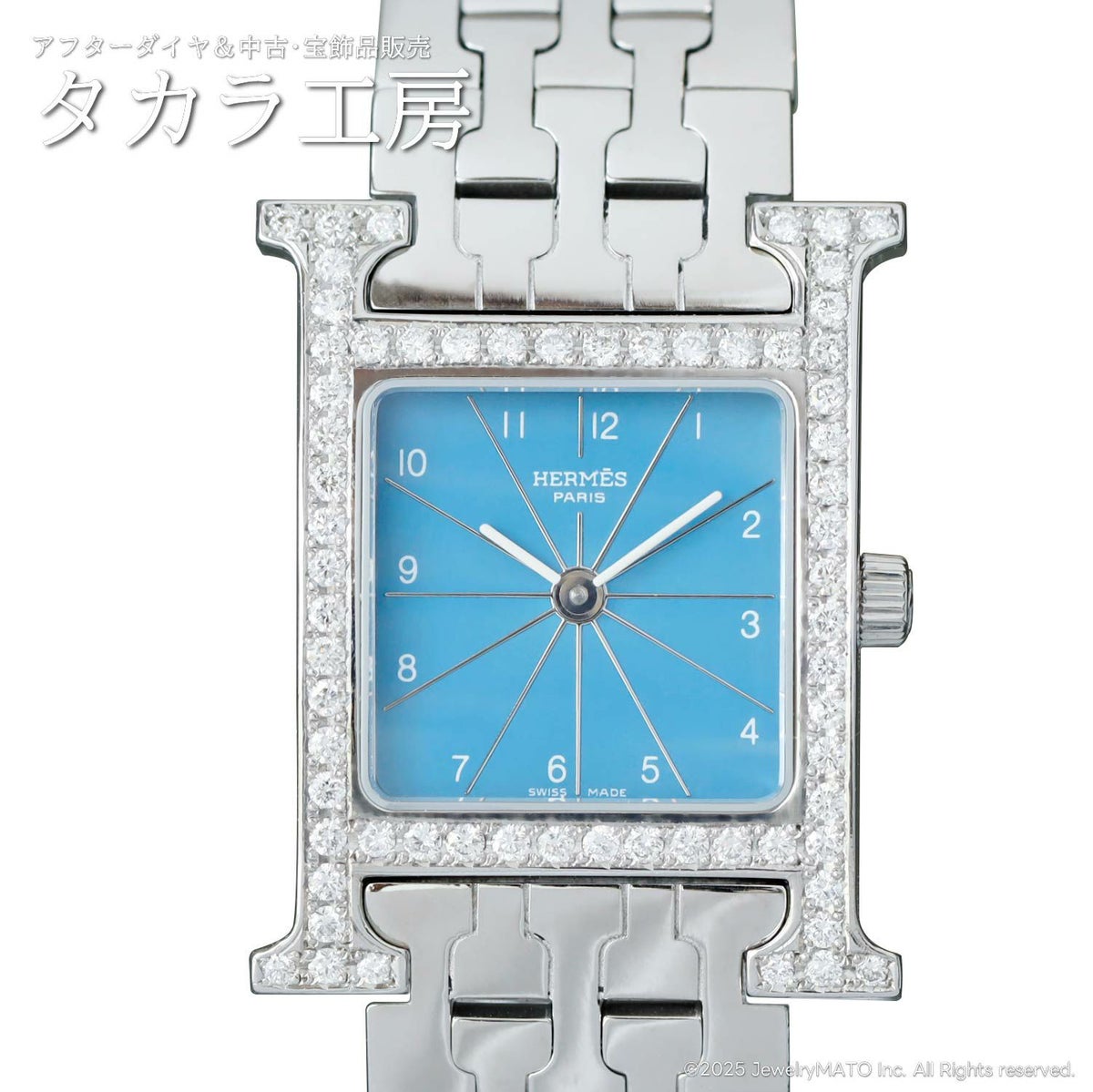 【鑑別書付き】エルメス 腕時計 Hウォッチ HH1.210 青文字盤 ダイヤ