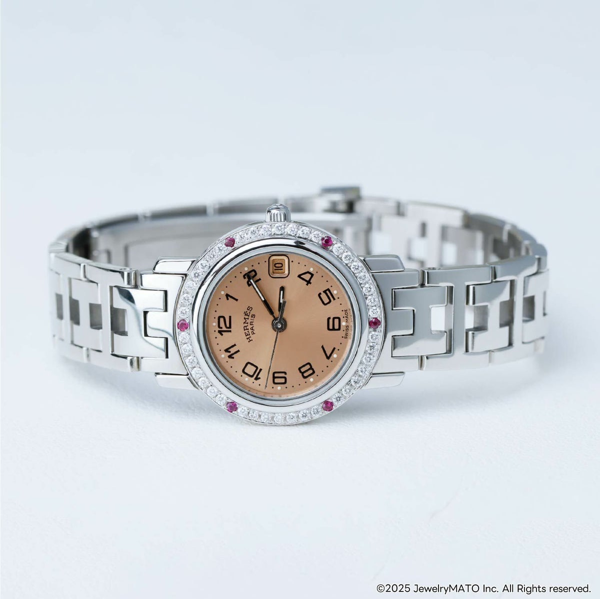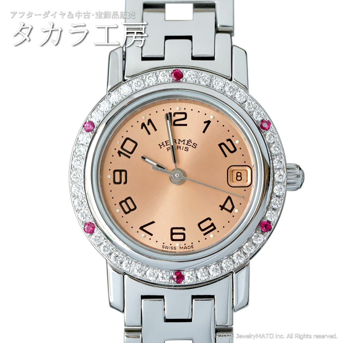 【鑑別書付き】 エルメス 腕時計 クリッパーCL4.210 ルビー ダイヤ