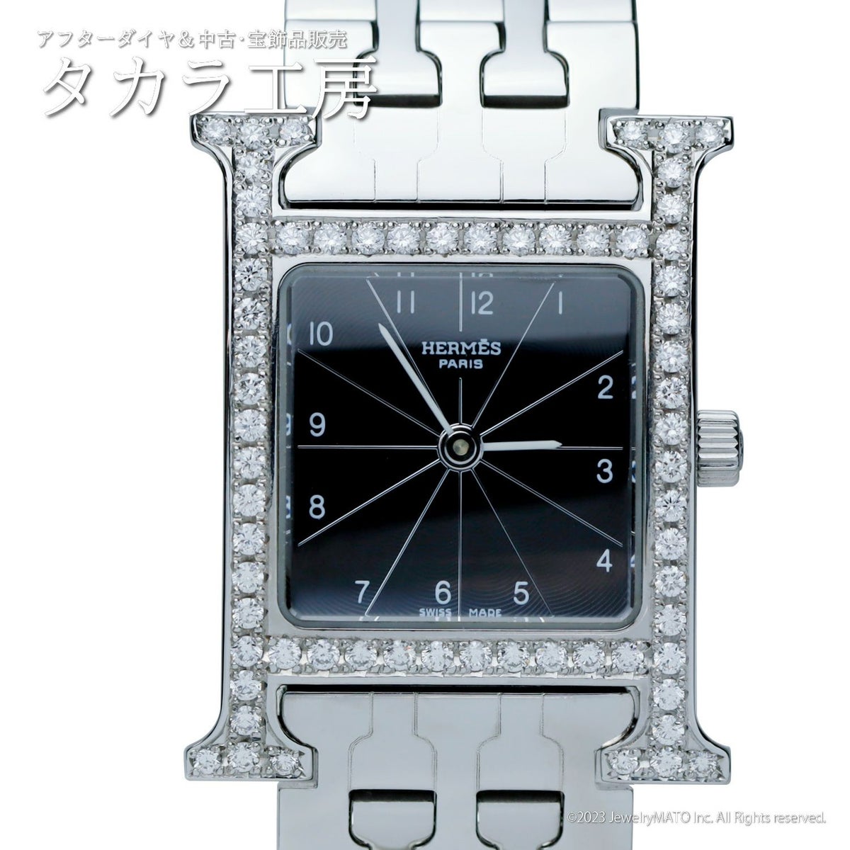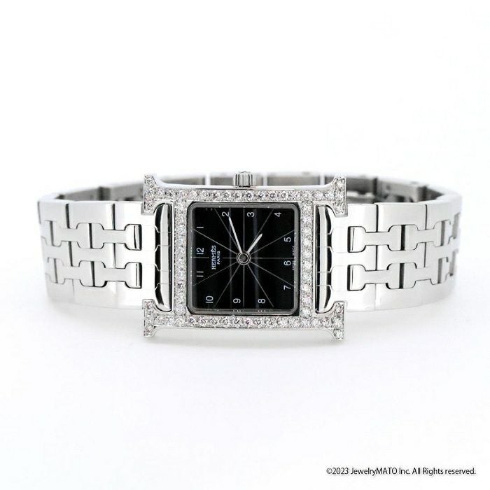 【鑑別書付き】 エルメス 腕時計 Hウォッチ HH1.210 ブラック ダイヤ