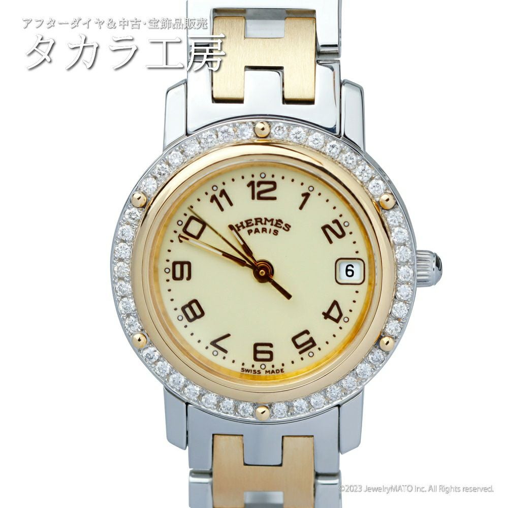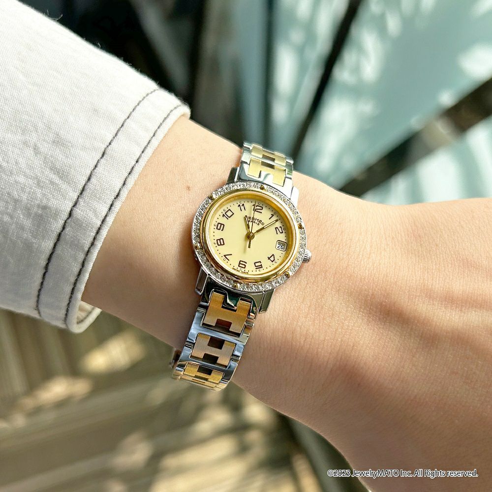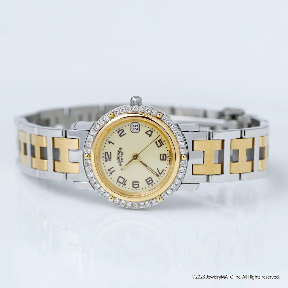 【鑑別書付き】エルメス 腕時計 クリッパーCL4.220 クリーム文字盤 ダイヤ