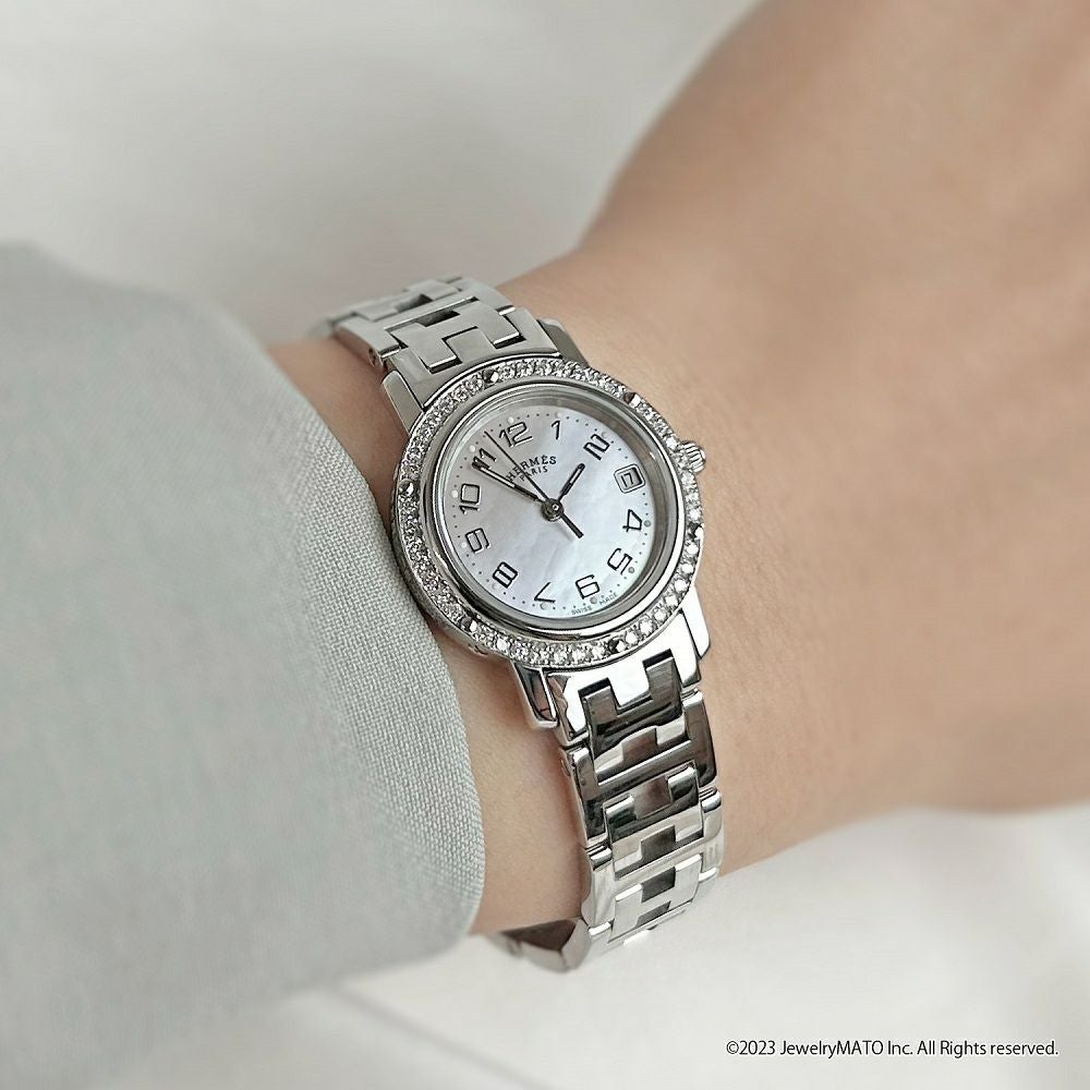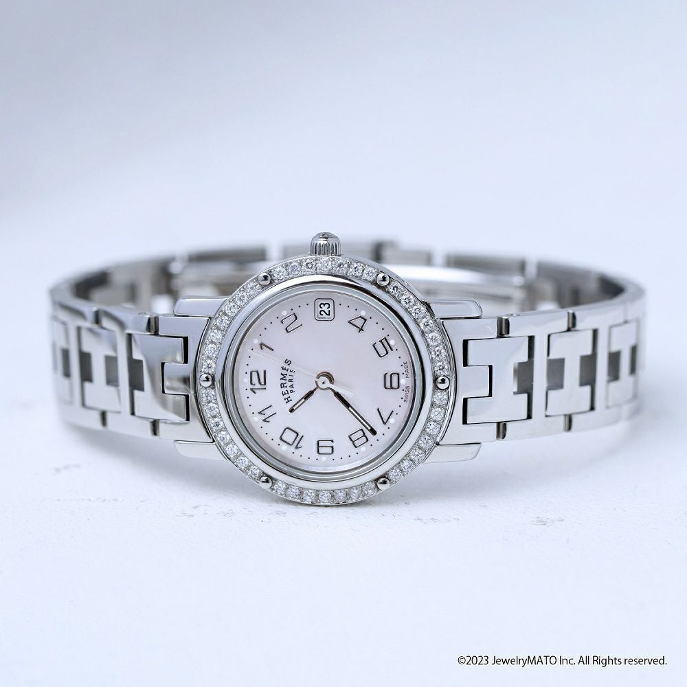 【鑑別書付き】エルメス 時計 クリッパー CL4.210 SS シェル ダイヤ