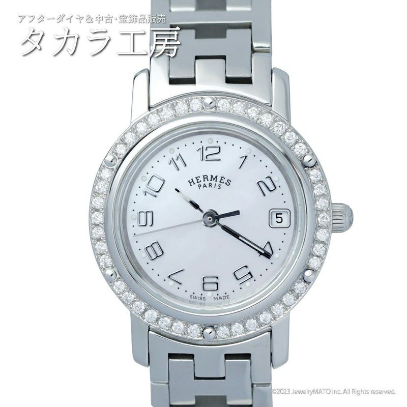 エルメスの頭文字"H"の連なったブレスに、裏蓋に彫刻されたロゴなど、ブランドのこだわりが感じられる、大人の女性にぴったりの一品です。