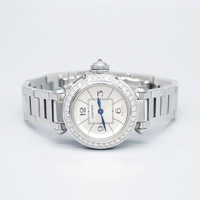 【鑑別書付き】 カルティエ 腕時計 ミスパシャ 白文字盤 ダイヤモンド