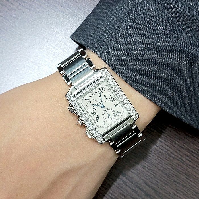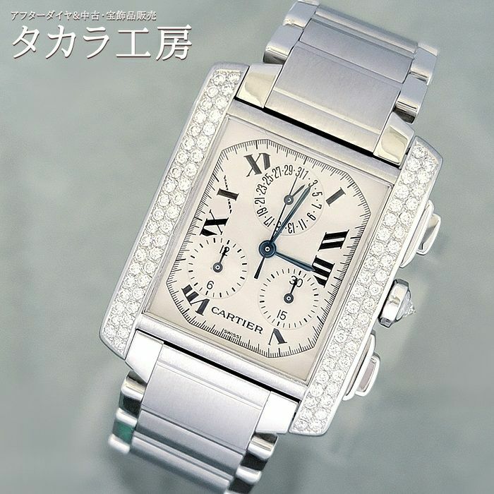 【鑑別書付き】 カルティエ 腕時計 タンクフランセーズクロノリフレックス ダイヤ