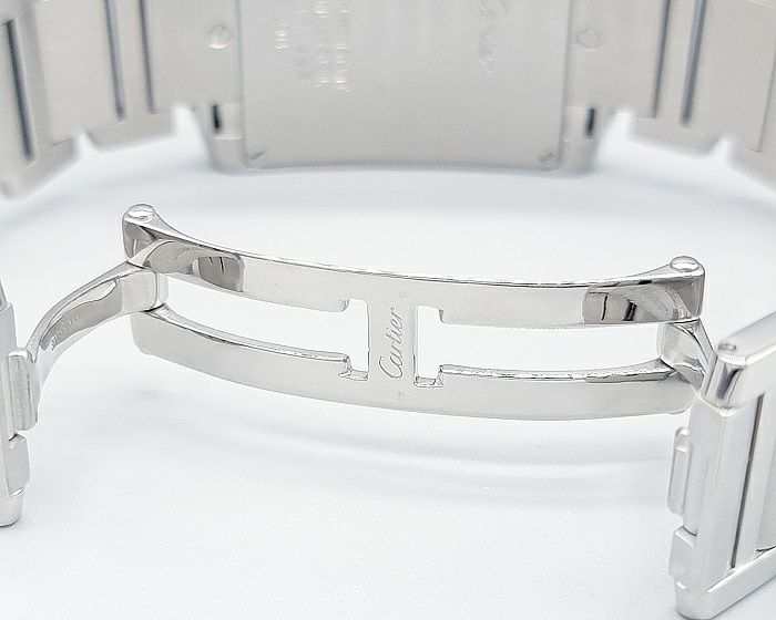 【鑑別書付き】カルティエ腕時計タンクアメリカンK18WGダイヤモンド