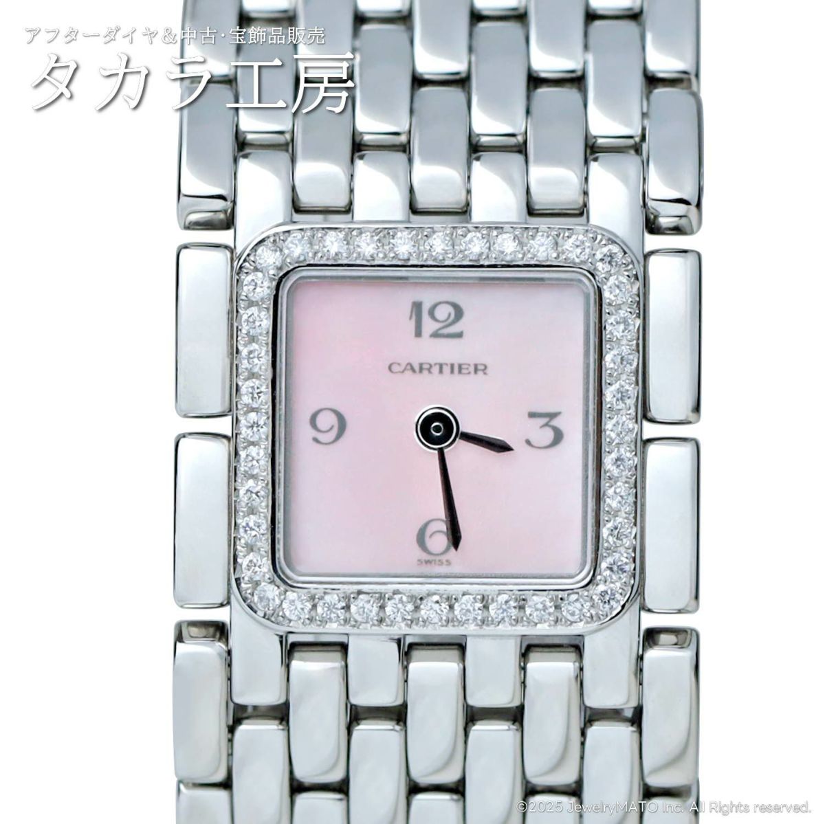 【鑑別書付き】 カルティエ 腕時計 ミニタンクディヴァン ピンクシェル ダイヤ